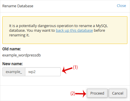 4. Mude o nome da "database" e clique em "Proceed".