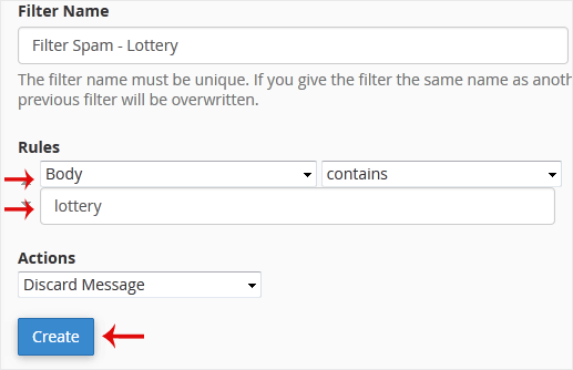 É difícil parar completamente o e-mail de spam, mas você pode filtrá-lo, descartá-lo, entregá-lo na pasta selecionada etc.